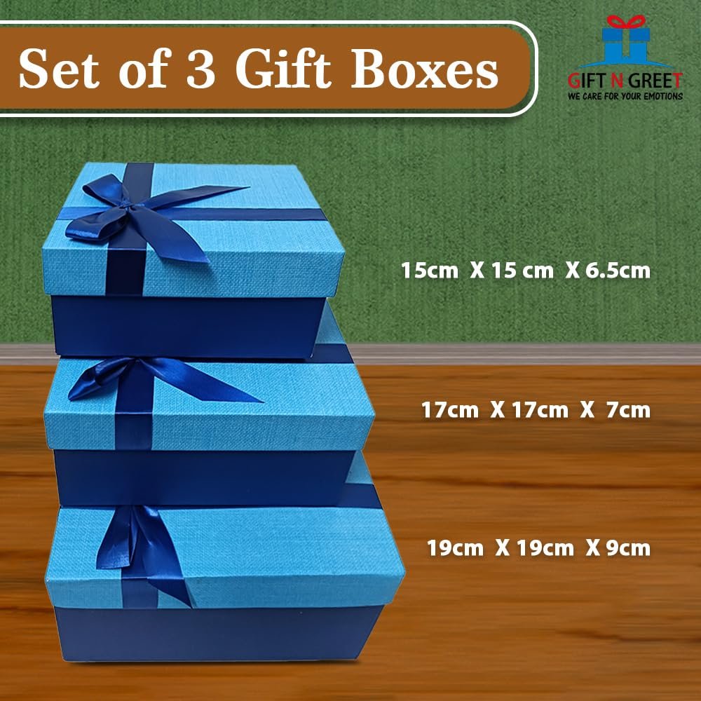 Gift N Greet Blue Gift Box 3 Sizes Gift Boxes with Lids for Presents 3 Packs Square Luxury Nesting Gift Boxes with Bow Ribbon Attach for Birthday Bridesmaid Wedding Christmas Proposal