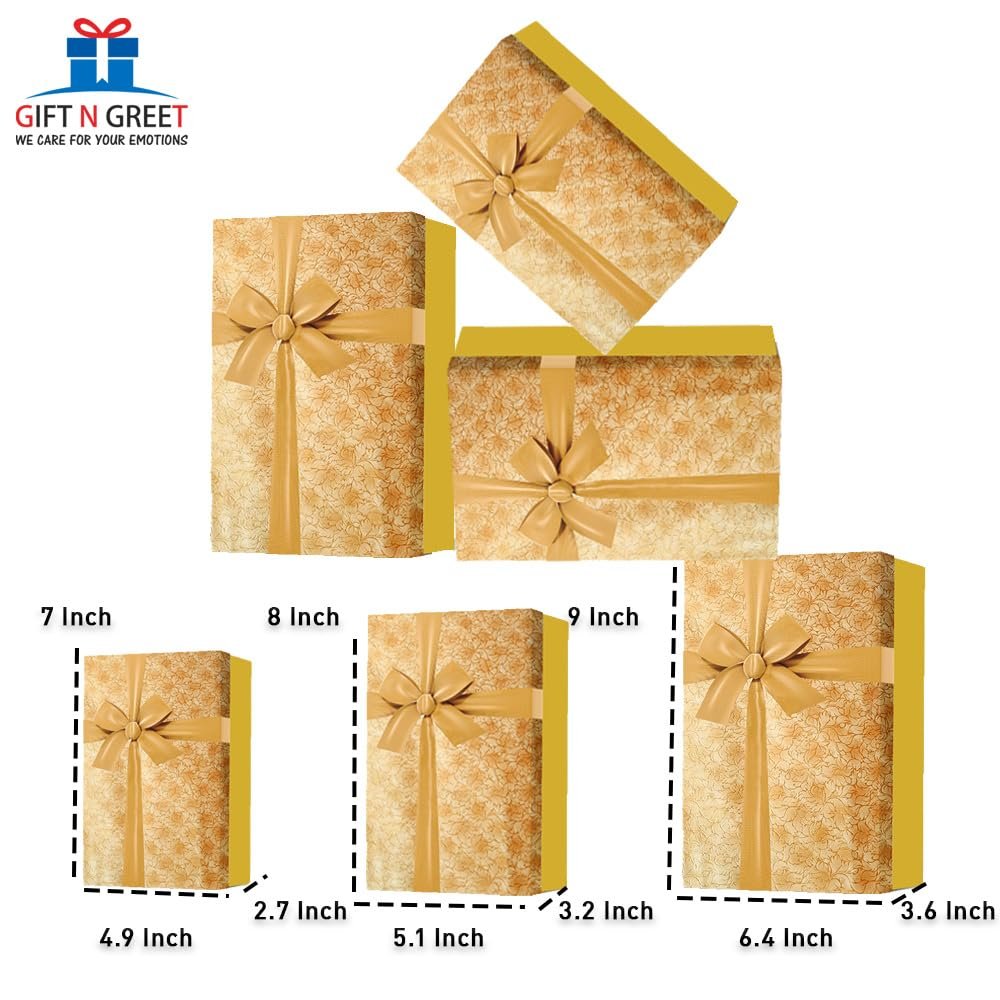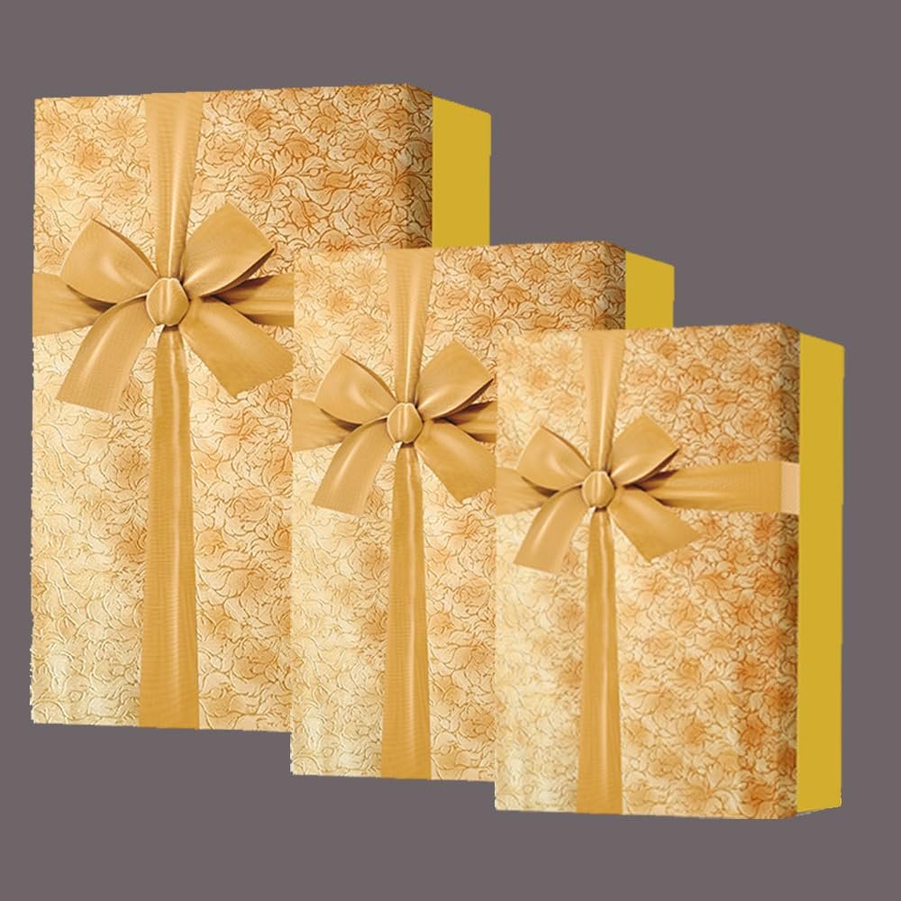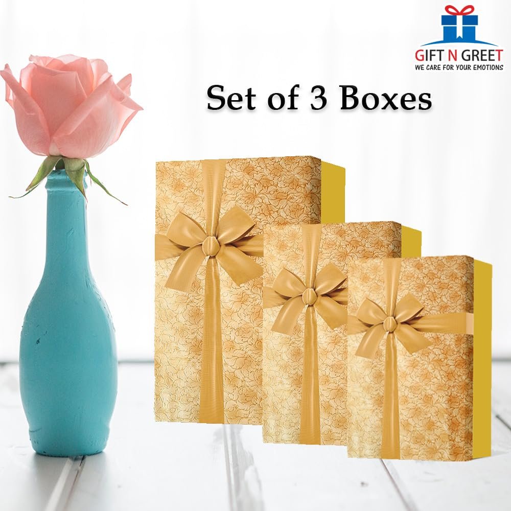 Gift N Greet Gift Box Sets Of-3 Luxury Gift Box Set with Ribbon for Packaging Multipurpose Gift Hampers | Boxes for Presents Diwali Christmas Wedding Birthdays Special Occasions (Gold)