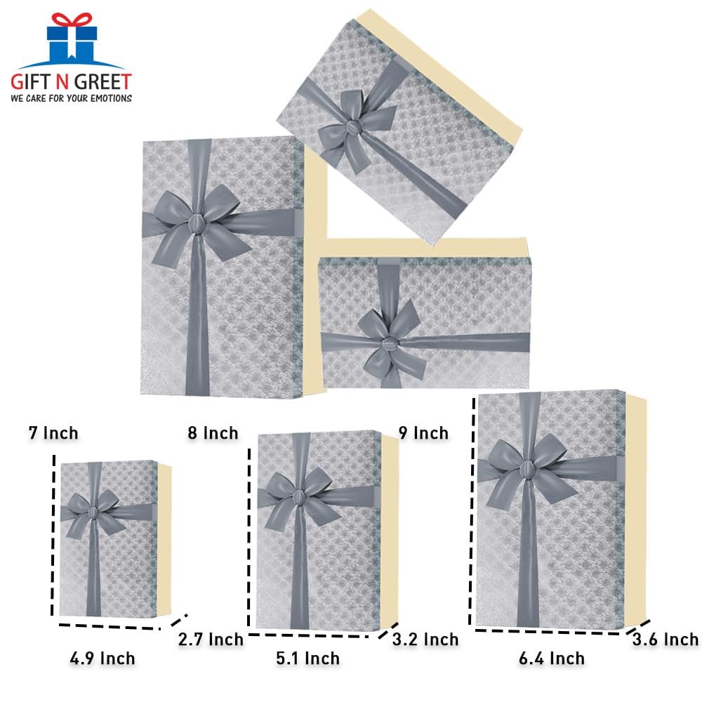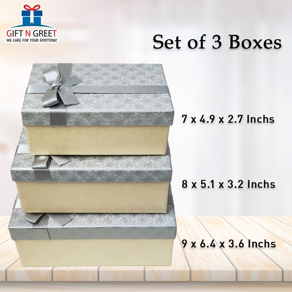 Gift N Greet Gift Box Sets Of-3 Luxury Gift Box Set with Ribbon for Packaging Multipurpose Gift Hampers | Boxes for Presents Diwali Christmas Wedding Birthdays Special Occasions (Silver)